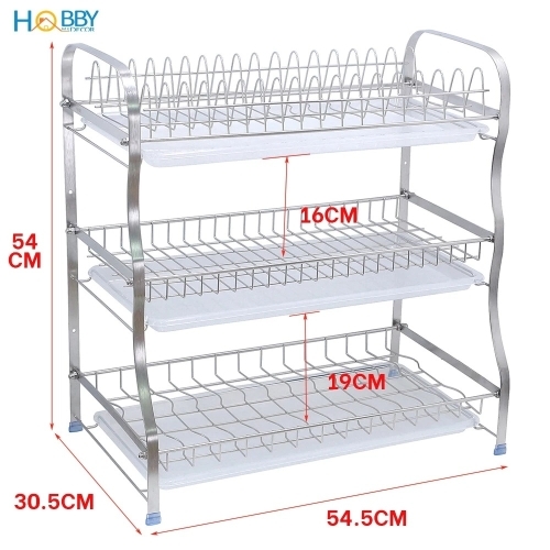 Kệ chén Inox 3 tầng Hobby home decor KC3T cao cấp có khay nhựa hứng nước