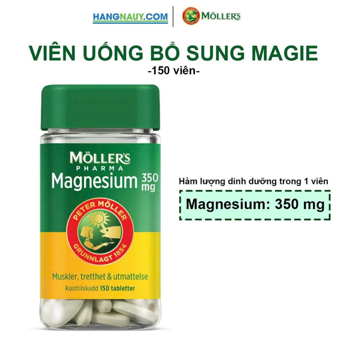 Viên uống bổ sung Magie Mollers nội địa Na Uy (150 viên)