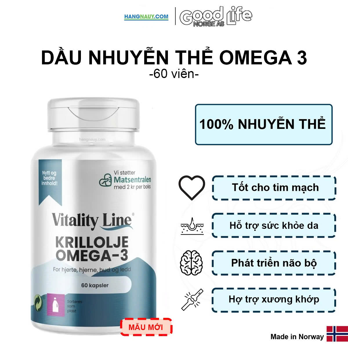 Hỗ Trợ Sức Khỏe Tim Mạch: Omega-3 giúp giảm cholesterol, huyết áp và nguy cơ bệnh tim.