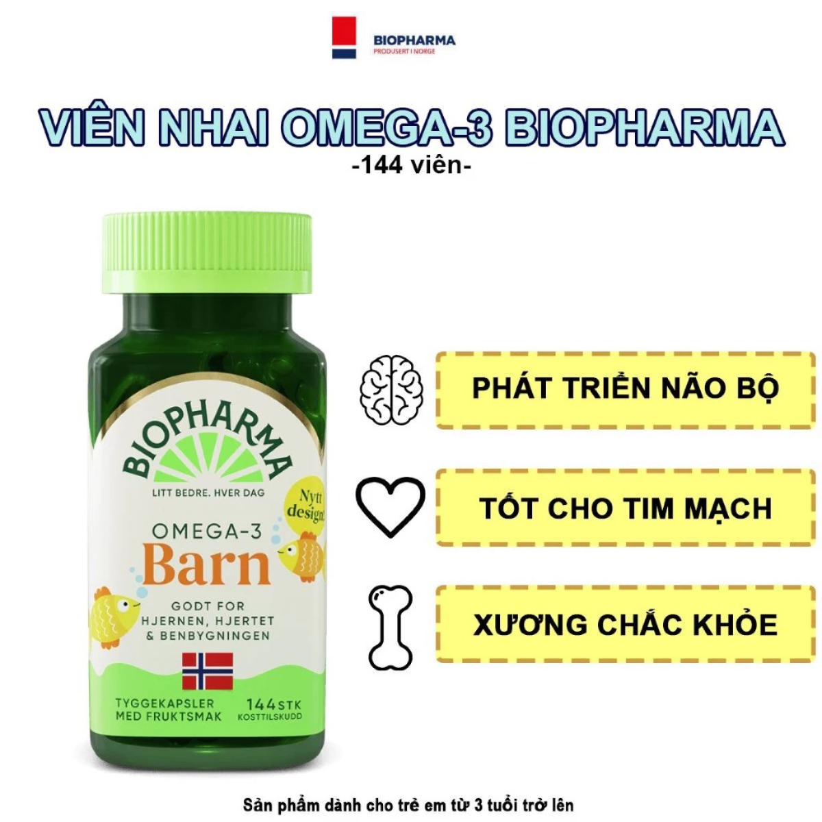 🌟 Viên nhai dầu cá DHA Biopharma Omega 3 Trippel Barn Na Uy - Hộp 144 viên 🌟